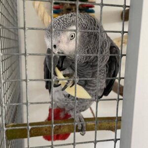 The African Grey Parrot is a highly intelligent and sociable bird, renowned for its exceptional ability to mimic human speech and sounds. With striking grey feathers, a bright red tail, and a gentle demeanor, this parrot makes a loyal and affectionate companion. Known for their intelligence and playful nature, African Greys thrive in loving and interactive environments.