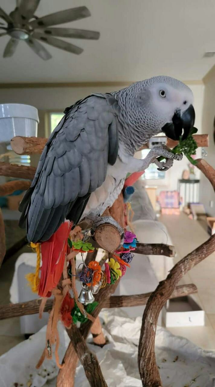 The African grey is a medium- to large-sized parrot and must be provided with adequate living space, with 3 feet in height. Larger cages are preferable. These birds thrive when they have lots of opportunities for playing with toys, interacting with their owners, and learning words and tricks. New Owners must spend several hours each day interacting with and training your African grey