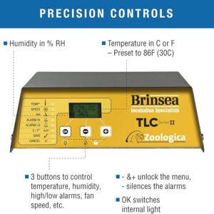 Precision Controls: Features an intuitive menu for adjustment of critical settings like incubator temperature in °F or °C and humidity (% RH), along with high/low temperature alarms, giving you peace of mind for your animals’ safety