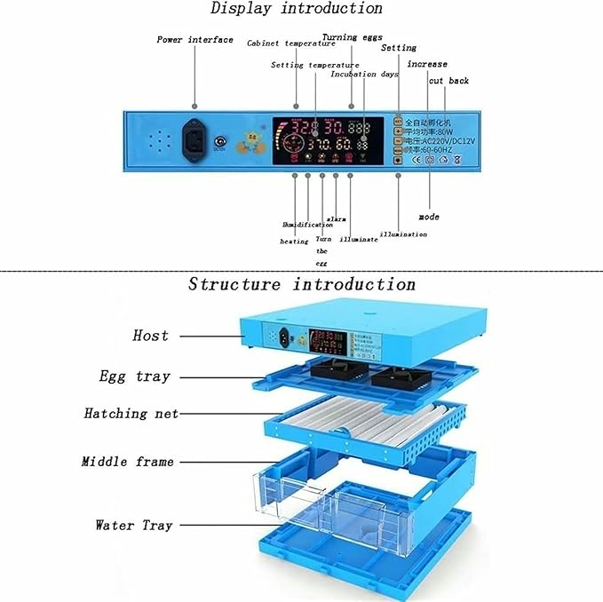 Egg Incubator 192 Eggs Fully Automatic Poultry Hatcher Machine with Humidity Temperature Control