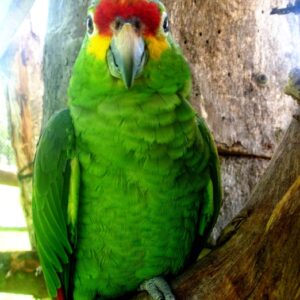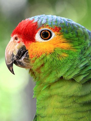 The Red Lored Amazon is a species of amazon parrot, native to tropical regions of the Americas, from eastern Mexico south to Ecuador where it occurs in humid evergreen to semi-deciduous forests.