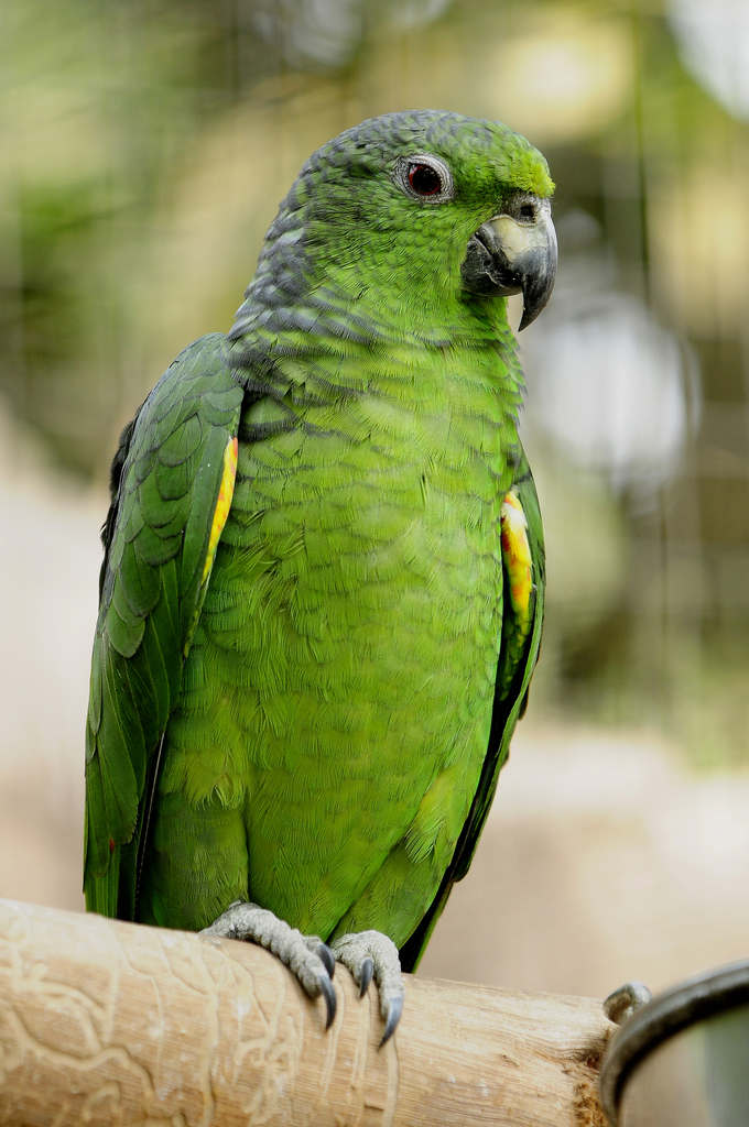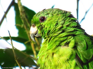 Scaly-Naped Amazon are amazing birds. Adults are 34 cm long and weigh 300g. Nominate forms are bright green in color, with dark green feathers tinged a dull blue/black and tipped with a dull black from the crown to the nape. The eyes are red with a pale gray eye-ring. The first to third secondary wing feathers have red bases, with the remaining wing feathers having green bases. The carpal edge is yellow mixed with red and orange. The tail is green with a yellow-green band, with the side tail feather being banded red and blue-purple and the outermost tail feather being margined with blue-purple. The bill is gray and horn in color. Juveniles are similar in appearance to adults but possess a pale horn colored bill tinged with gray and brown eyes