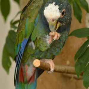 Also known as the White-capped Pionus or White-capped Parrot, is a popular pet and relatively common in captivity. They are a delight to own! Once they are established they make a very docile parrot that is calm and undemanding. They are very sweet and affectionate.